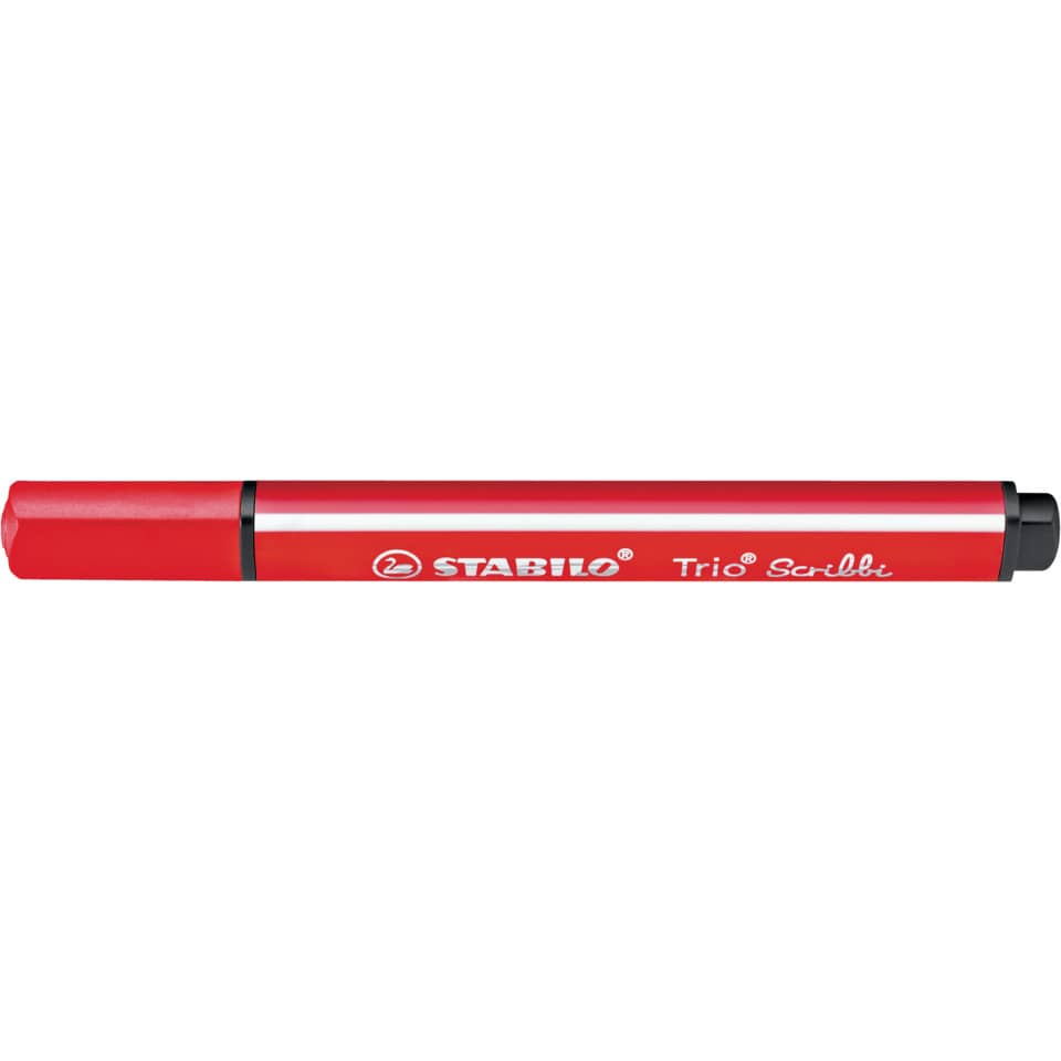 Dreikant-Filzstift STABILO® Trio® Scribbi. Material des Schaftes: Polypropylen. Farbe des Schaftes: rot. Ausführung: gefederte Rundspitze, Spitze druckgesichert. Art der Schreibflüssigkeit: Tinte auf Wasserbasis, auswaschbar, farbintensiv. Dreikant-Design für sicheren, ergonomischen Halt in Kinderhänden. Strichstärke: 1,5 - 2,0 mm. Schreibfarbe von Schreibgeräten: rot. Zertifikate und Zulassungen: CE.