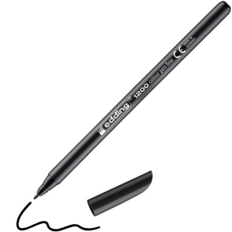 Fasermaler edding 1200 color pen. Fasermaler zum Schreiben, Malen, Colorieren, Hervorheben und Markieren. Idel zum Anfertigen von Zeichnungen und zum kreativen Schreiben. Wassergelöste Tinte mit hoher Lichtbeständigkeit, auswaschbar auf Wasserbasis. Fasermaler mit schwarzem Kunststoffschaft und Rundspitze. Strichstärke: 0,5 - 1 mm. Schreibfarbe: schwarz.