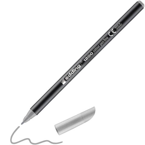Fasermaler edding 1200 colourpen. Fasermaler zum Schreiben, Malen, Colorieren, Hervorheben und Markieren. Ideal zum Anfertigen von Zeichnungen und zum kreativen Schreiben. Wassergelöste Tinte mit hoher Lichtbeständigkeit, Tinte auf Wasserbasis. Fasermaler mit schwarzem Kunststoffschaft und Rundspitze. Strichstärke: 1 mm. Schreibfarbe: silbergrau.