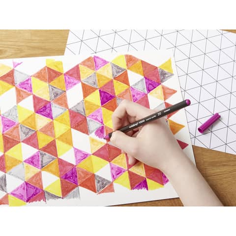 Fasermaler zum Schreiben und Malen, Zeichnen und für Layoutarbeiten auf hellem Papier. Die Rundspitze verfügt über eine Strichbreite von 2 mm. Die Tinte auf Wasserbasis ist vor dem Antrocknen wasservermalbar.