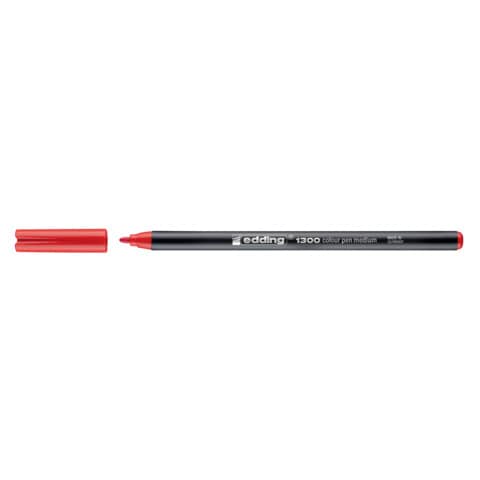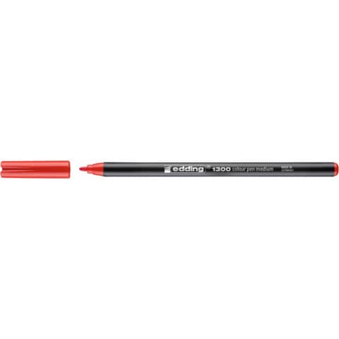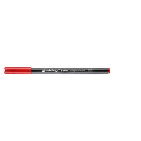 Fasermaler edding 1300 color pen. Ideal für das Anfertigen von Zeichnungen, Schriften, Skizzen, Modezeichnungen und Effektvollen Layouts. Fasermaler mit schwarzem Kunststoffschaft und formstabiler Rundspitze. Auswaschbare Tinte auf Wasserbasis. Hohe Lichtbeständigkeit. Strichstärke: ca. 3 mm. Schreibfarbe: rot.