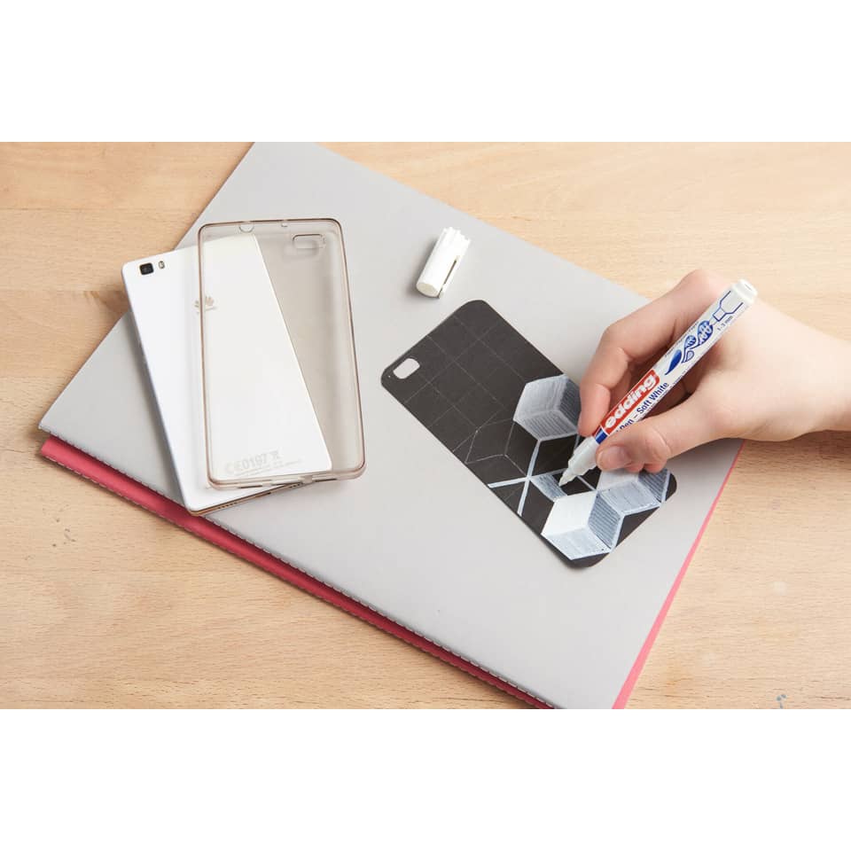 Fasermaler zum Schreiben und Zeichnen in halbtransparentem weiß auf dunklem und hellem Papier ermöglicht Pastellschattierungen mit edding Fasermalern. Die Rundspitze verfügt über eine Strichbreite von 1-3 mm. Pigmenttinte auf Wasserbasis. Halbtransparentes weiß.