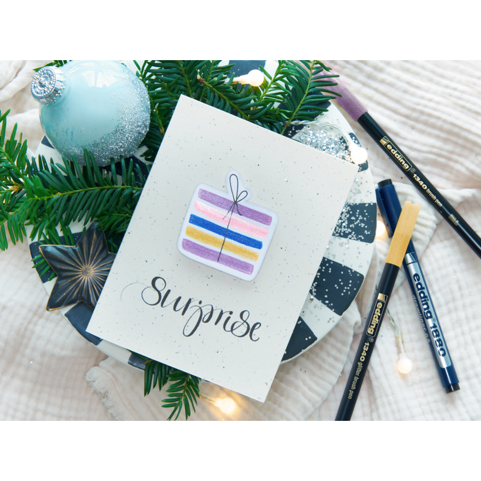 Hochwertiges Display mit attraktivem Design für Weihnachten, das zu Impulskäufen und Zusatzverkäufen am Point of Sale führt. Das Display enthält 124 edding 1340 glitzer Pinselstifte.