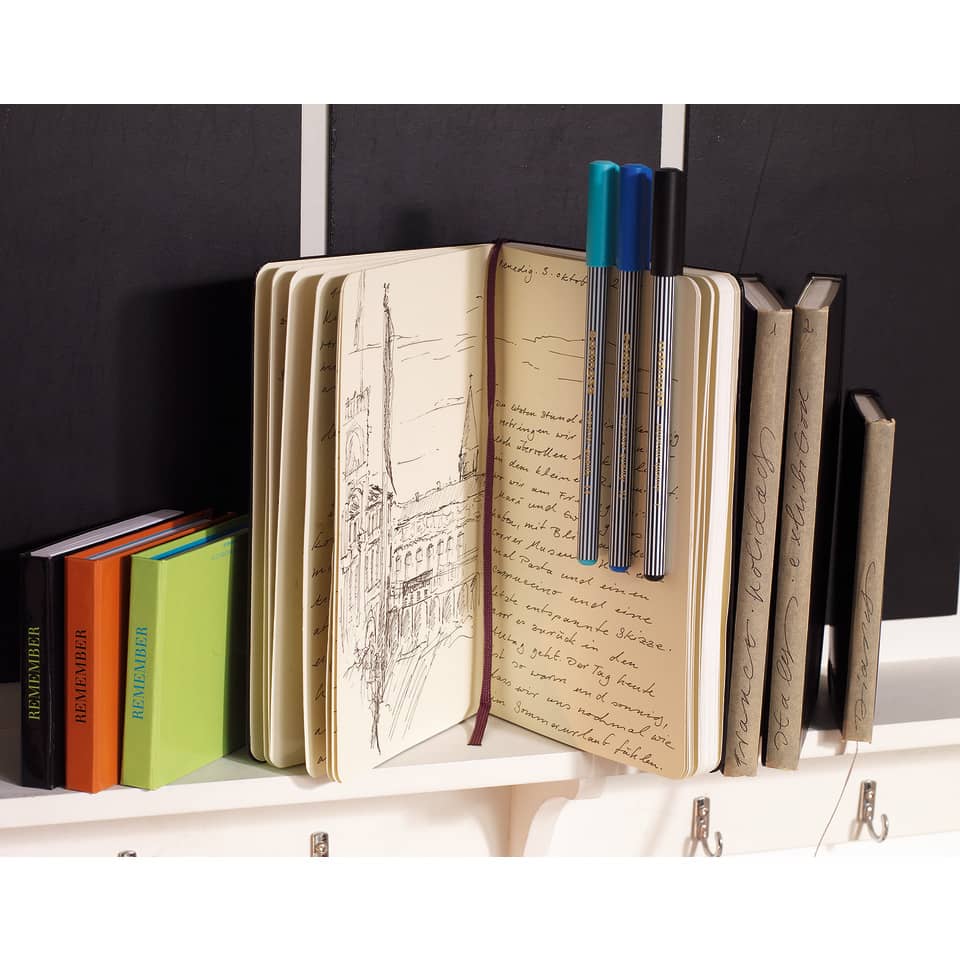 Fineliner zum Schreiben, Skizzieren, Illustrieren und für Layoutarbeiten auf hellem Papier. Die metallgefasste Kunststoffspitze verfügt über eine Strichbreite von 0,3 mm. Die wasserbasierte Tinte ist schnelltrocknend, vor dem Antrocknen wasservermalbar und schlägt nicht durch das Papier.
