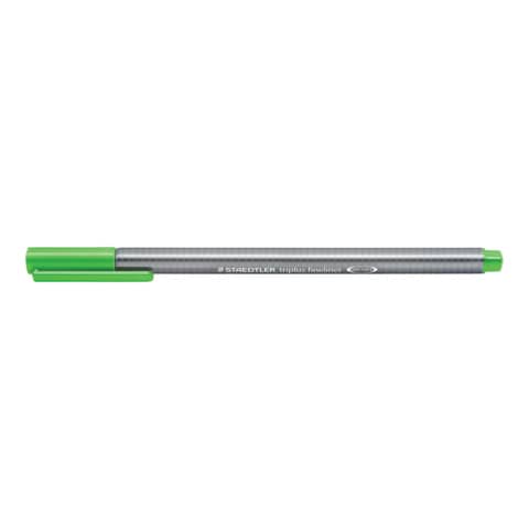 Feinschreiber triplus® fineliner, Ausführung der Griffzone: ergonomischer Dreikant-Schaft für entspanntes Schreiben, Material des Clips: Kunststoff. airplane-safe - automatischer Druckausgleich verhindert das Auslaufen des Stiftes im Flugzeug, auswaschbar aus den meisten Textilien, PP-Schaft garantiert lange Lebensdauer. Ausführung Stift:. Typbezeichnung der Mine: Tintenspeicher, Farbe des Schaftes: silber, Farbe der Kappe: in Tintenfarbe. Ausführung Spitze: Ausführung der Spitze: Faserspitze (Rund), Strichstärke: ca. 0,3 mm. Ausführung Schreibflüssigkeit: Tinte auf Wasserbasis, kann einige Tage offen liegen bleiben ohne einzutrocknen, Schreibfarbe von Schreibgeräten: gelbgrün.