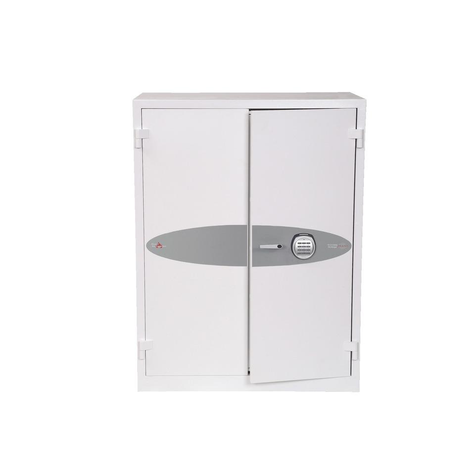 Komplett montiert. DER PHOENIX FIRE RANGER FS1512E setzt neue Maßstäbe für den Schutz vor Feuer und Einbruch in einem wirtschaftlichen, praktischen und attraktiven Format. FEUERSCHUTZ - Bietet 30 Minuten Feuerschutz für Papierunterlagen bei 500 °C. VERSCHLUSS - Ausgestattet mit einem fortschrittlichen elektronischen Hochsicherheitsschloss mit klarer LED-Anzeige, Doppelsteuerung, verstecktem Code und verschlüsseltem Code, der standardmäßig programmiert werden kann. SICHERHEITSSCHUTZ - Der Safe wird für eine Nachtbargelddeckung von € 1.500 oder Wertsachendeckung von € 15.000 empfohlen. KONSTRUKTION - Hochsicheres 3-Wege-Getrieberiegelwerk bietet große Festigkeit und Angriffsresistenz. BESONDERE EIGENSCHAFTEN - Lieferung mit 2 höhenverstellbaren Regalen. BEFESTIGUNG - Fertig vorbereitet für die Bodenbefestigung, mit mitgelieferten Befestigungsschrauben für Beton. FARBE - Beschichtet in einer hochwertigen kratzfesten weißen Farbe RAL9003. Lagerung von max. 30 Ordner. Maße: 1225x930x520mm