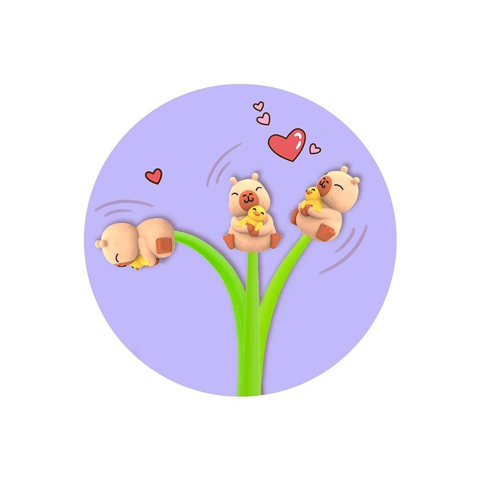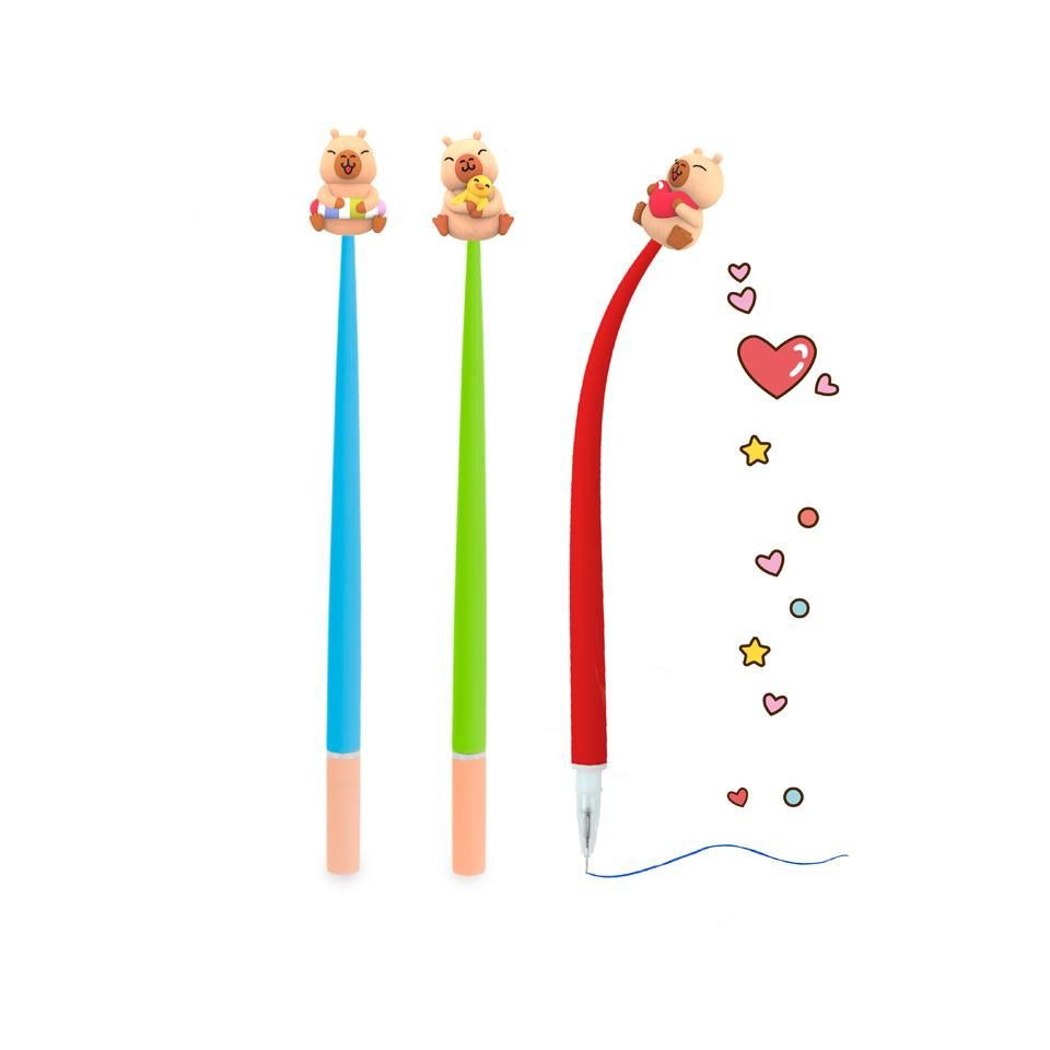Für außergewöhnliches Schreib-Feeling sorgt dieser zauberhafte Fineliner aus der Happy Life Capybara Serie. Die superangenehme Soft-Touch-Oberfläche und die leicht gleitende Mine machen das Schreiben zum echten Vergnügen. Die Mine ist auswechselbar und schreibt in der Farbe Blau mit einer feinen Strichstärke von 0,5 mm. Der Fineliner besteht aus Silikon, ist ca. 22 cm lang und besitzt einen witzigen Wackelfigur-Topper von etwa 3,1 cm. Erhältlich ist der Stift in drei verschiedenen Farben mit unterschiedlichen Wackelfiguren: Water Fun, Love und Friends.