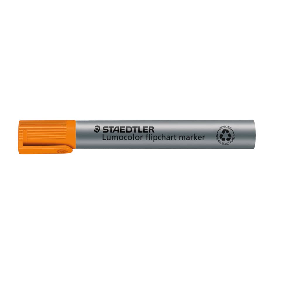Flipchart-Marker Lumocolor®. Nachfüllbar. Bezeichnung der Schreibflüssigkeit: geruchlose Tinte, xylol- und toluolfrei. Kann einige Tage offen liegen bleiben, ohne einzutrocknen. Ausführung der Spitze: Rundspitze. Efficient for ecology: blockierte Spitze, Schaft und Kappe aus PP garantieren lange Lebensdauer, einfaches Nachfüllen mit Tankstelle 488 56. Material des Schaftes: PP. Kappe umsteckbar. Clip vorhanden. Farbe des Schaftes: anthrazit. Strichstärke: 2 mm. Schreibfarbe von Schreibgeräten: orange. Ausführung des Inhalts mit Packung: Schachtel mit 10 Stück.