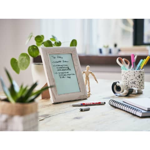 Non-permanenter Folienschreiber zum feinen Schreiben auf fast allen geschlossenen Kunststoffoberflächen. Die Beschriftung ist mit Wasser korrigierbar. Die Rundspitze verfügt über eine Strichbreite von 0,6 mm. Die Tinte des non-permanent Folienschreibers ist wischfest und schnelltrocknend.