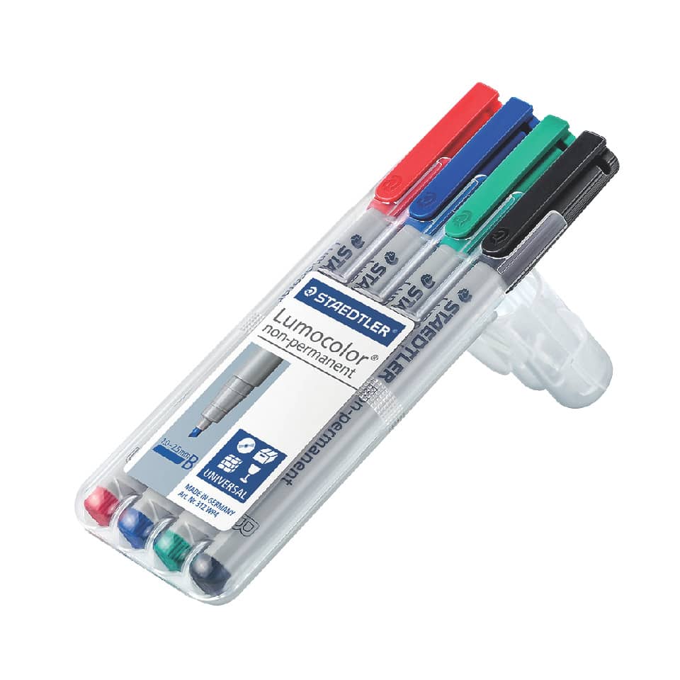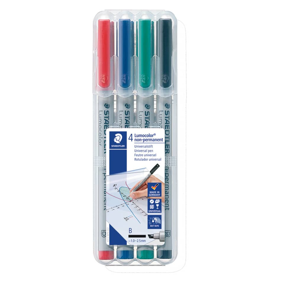 Eigenschaften "Folienstift Lumocolor® non-permanent, ca. 1.0 mm oder 2.5 mm, STAEDTLER Box mit 4 Farben STAEDTLER 312 WP4"