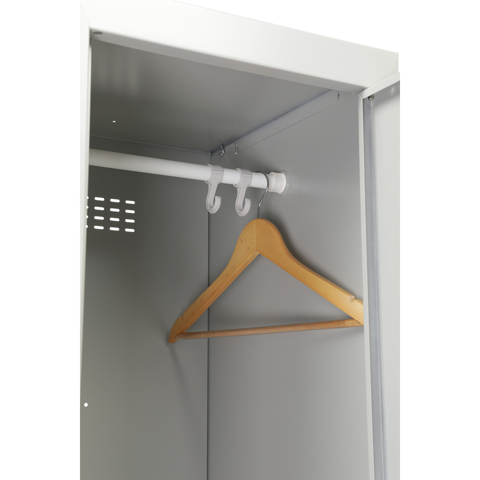 Einfache Selbstmontage, soweit als möglich vormontiert mit Aufbauanleitung, hochwertig kartonverpackt. DER PHOENIX PL1230GRE PERSONAL LOCKER ist die ideale Lösung für Büros, Lager, Fitnessstudios und Schulen zur Aufbewahrung von Kleidung und persönlichen Gegenständen. KONFIGURATION - 1 Spind 2 Türschließfach. SYSTEM – Das modulare System ermöglicht das Zusammenschrauben der Schließfächer zu einem Block. INNENAUSSTATTUNG - Lieferung mit Kleiderstange und Kleiderhaken. Kann Mäntel und Overalls auf Standard-Kleiderbügeln unterbringen. VERRIEGELUNG - Elektronisches Schloss mit privater und öffentlicher Funktion. Ausführliche Informationen zu den Verriegelungsoptionen finden Sie im PDF-Spezifikationsblatt. KONSTRUKTION - Festes geschweißtes Rahmendesign, ergänzt durch hochwertige Befestigungen, sorgen für ein extrem robustes, langlebiges Schließfach. Türen können rechts oder links öffnend montiert werden. BESONDERE EIGENSCHAFTEN - Jede Einheit wird mit Lüftungsöffnungen belüftet, die sich sowohl in der Tür als auch in der Rückwand befinden. MONTAGE – Schließfächer werden als flaches Paket mit einfach zu montierendem Design mit festem Rahmen geliefert. FARBE - Mit hochwertiger pulverbeschichteter grauer Farbe (RAL7035) und auffälliger roter (RAL3000) Tür, die Ihrem Arbeitsbereich/Umkleidebereich einen Hauch von Farbe verleiht. Maße: 1830x300x500 mm
