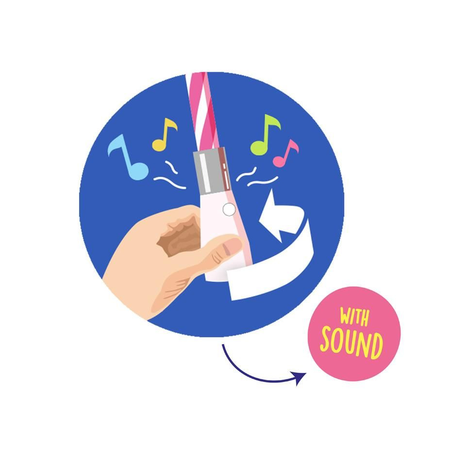 Durch Drehen der Halterung wird der Sound aktiviert – sie spielt die bekannte „Happy Birthday“-Melodie. Ein Spaß für Groß und Klein! Batterielaufzeit: ca. 3 Stunden. Länge: ca. 11,8 cm. Farben: Grün, Blau, Pink, Lila.