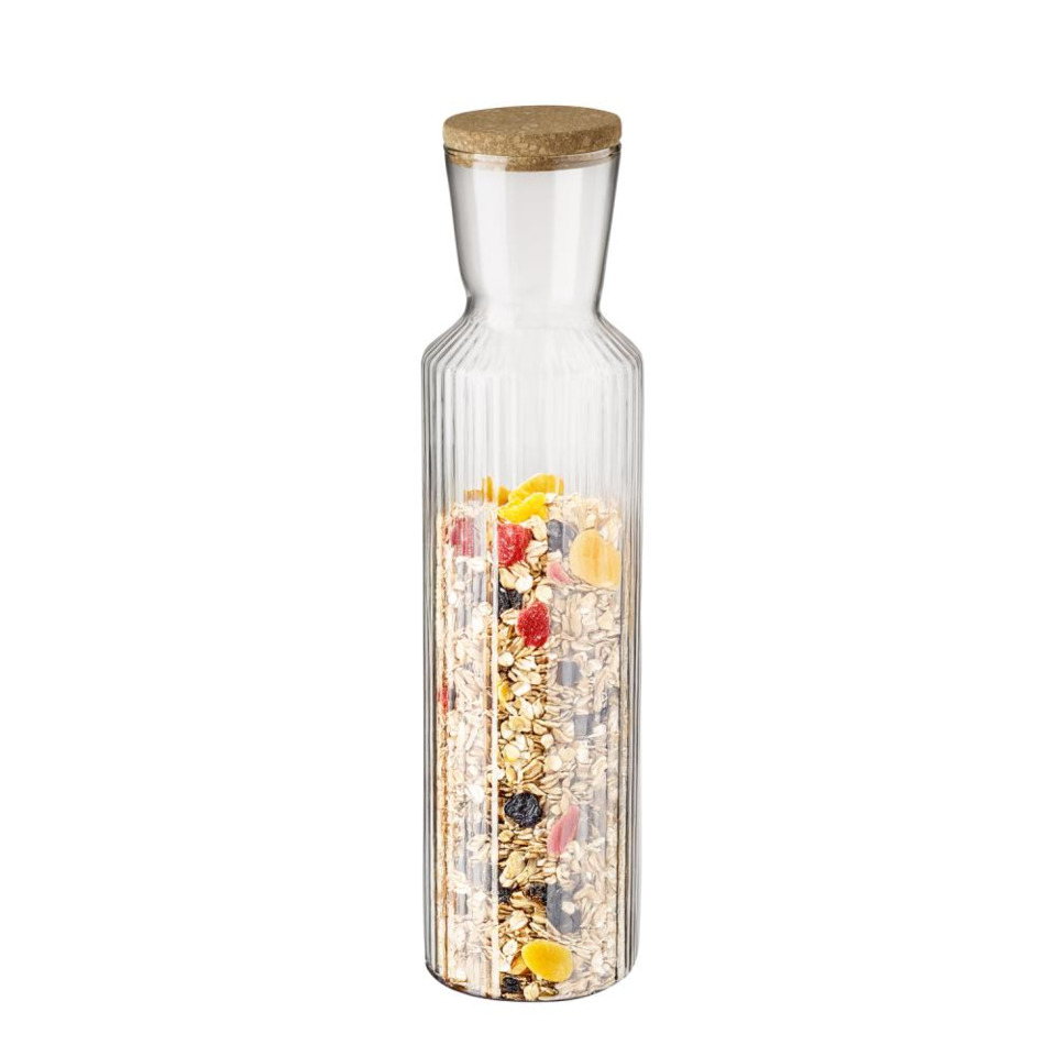 Die große Glaskaraffe "Lines" überzeugt durch ihr elegantes Rillendesign und einen natürlich schließenden Korkdeckel. Ideal für Cerealien, Milch oder Säfte – stilvoll serviert am Frühstückstisch, Buffet oder im Büro. Mit einem Fassungsvermögen von 1,5 Litern und kompakten Maßen von 9 × 9 cm bei 35 cm Höhe bietet sie ausreichend Platz und bleibt dennoch formschön und handlich.