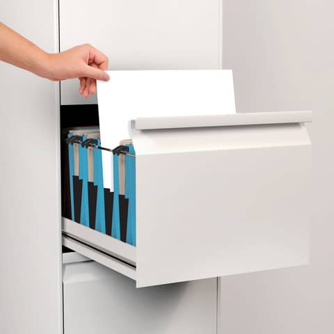 Exklusiver 240g/qm starker Canson® Karton verhindert das Ausreißen des Kartons bei intensivem Gebrauch. Seitlich geschlossen mit Leinenfröschen. Komfortsichtreiter mit aufklappbarer Rückwand und auswechselbarem Beschriftungsschildchen. Schlitzstanzung für Einhängeheftstreifen 27 592. Extrem steife Metallhängeschienen mit pulverbeschichteten Enden. Größe: 318 x 6 x 240 mm (B x T x H). Für ca. 330 Blatt. Beschriftungsmöglichkeit mit ELBA print. Für A4. Umweltzeichen "Der Blaue Engel" und "Paper by Nature".