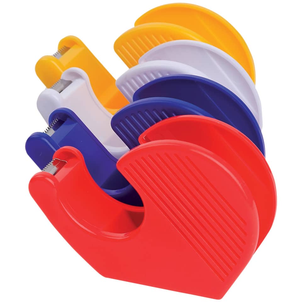 Lieferung ein Stück sortiert - keine Farbauswahl möglich! - Handabroller für Rollen bis 19 mm x 33 m (B x L). Mit Metallmesser. Kerndurchmesser: Rollen bis 26 mm Ø.