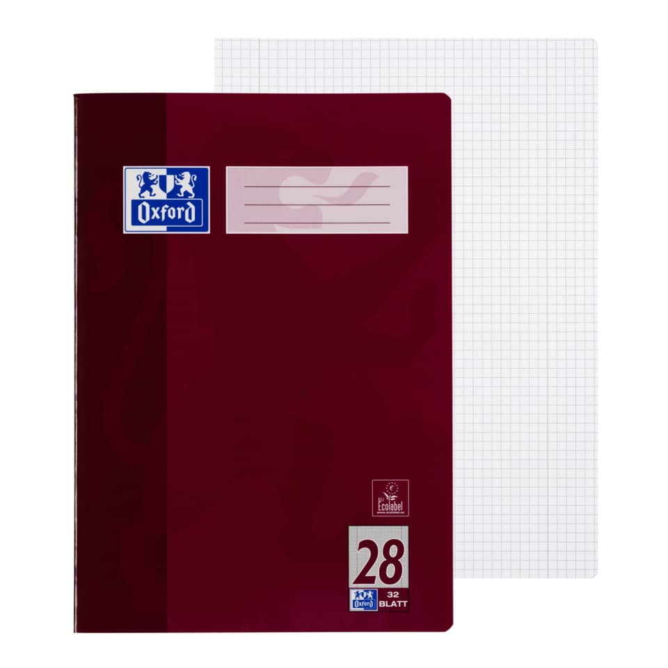 A4 Schulheft, 32 Blatt. OPTIK PAPER® für leichtes Schreiben und optimale Schreibergebnisse. Kariert mit Rändern rechts und links (Lineatur 28) für Notizen oder Korrekturen am Rand. Extra robuster, veredelter Umschlag für dauerhaft optimale Nutzung. Mit Löschblatt um überschüssige Tinte aufzunehmen. Rückendraht geheftet um alle Seiten optimal beschreiben zu können. Durch umweltverträgliche Herstellung & Produktgüte ausgezeichnet mit dem anerkannten EU - Ecolabel.