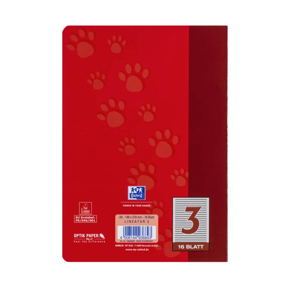 A5 Schreibheft, 16 Blatt. OPTIK PAPER® für leichtes Schreiben und optimale Schreibergebnisse. Lineatur 3 mit Rand rechts, reduzierte Hilfslinien unterstützen optimal die Schreibentwicklung. Extra robuster, veredelter Umschlag für dauerhaft optimale Nutzung. Mit Löschblatt um überschüssige Tinte aufzunehmen. Rückendraht geheftet um alle Seiten optimal beschreiben zu können. Durch umweltverträgliche Herstellung & Produktgüte ausgezeichnet mit dem anerkannten EU - Ecolabel.