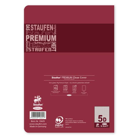 Eigenschaften "Heft, A5, 90g/m², 32 Blatt, Lin.5, kariert STAUFEN PREMIUM 734010605"