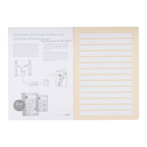 Das A4 Recycling Schulheft in Lineatur 1, für alle Ausgangsschriften, farblich hinterlegt und ausgestattet mit dem besten, am Markt verfügbaren, 90g Papier (OPTIK PAPER® Recycling) für optimale Schreibergebnisse, ausgestattet mit einem robusten Umschlag für ein dauerhaft gutes Erscheinungsbild