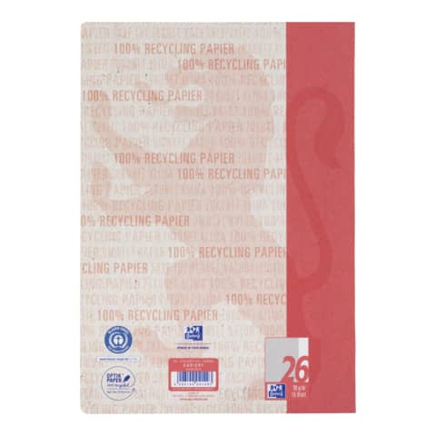Eigenschaften "Heft Recycling, A4, 90g/m², 16 Blatt, Lin.26, kariert, rot OXFORD 400158976"