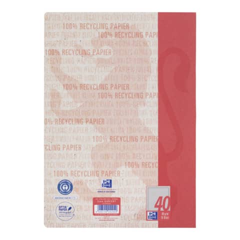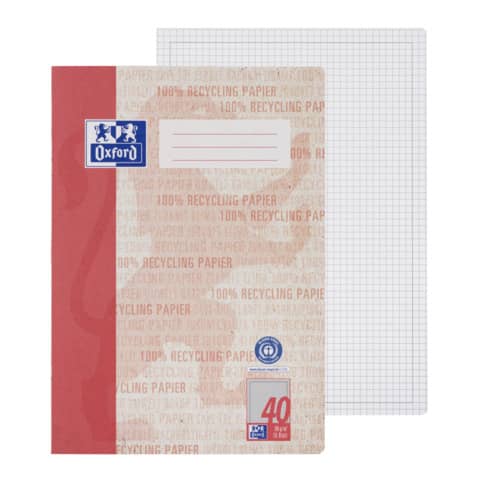 Eigenschaften "Heft Recycling, A4, 90g/m², 16 Blatt, Lin.40, kariert mit Rand, rot OXFORD 400159485"