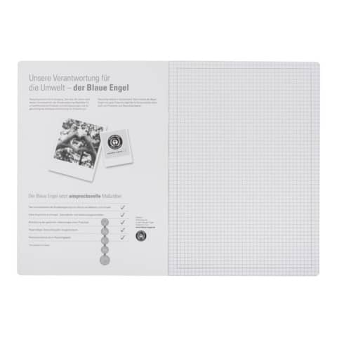 OPTIK PAPER® 100% recycled für leichtes Schreiben und optimale Schreibergebnisse. A4 Schreibheft, 16 Blatt. Kariert mit zusätzlichem Rahmen innerhalb der Lineatur (Lineatur 40) für Notizen rundherum. Extra robuster Umschlag für dauerhaft optimale Nutzung. Mit Löschblatt, um überschüssige Tinte aufzunehmen. Umweltverträgliche Herstellung & Produktgüte ausgezeichnet mit dem Blauen Engel. Rückendraht geheftet, um alle Seiten optimal beschreiben zu können.