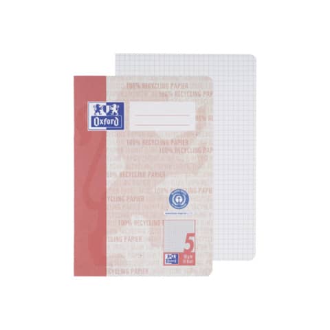 Produktinformationen "Heft Recycling, A5, 90g/m², 16 Blatt, Lin.5, kariert, rot OXFORD 400159459"