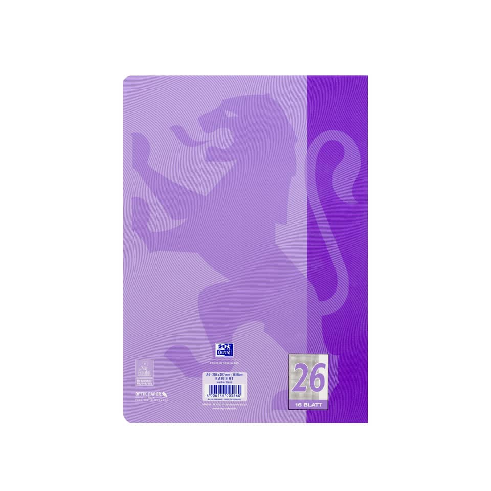 Oxford Touch Schulheft Format A4. 16 Blatt Optik Paper 90g. Keine Eselsohren dank abgerundeter Ecken. Extra robuste Umschläge mit "Touch"-Veredelung. L26 kariert weißer Rand, Farben flieder