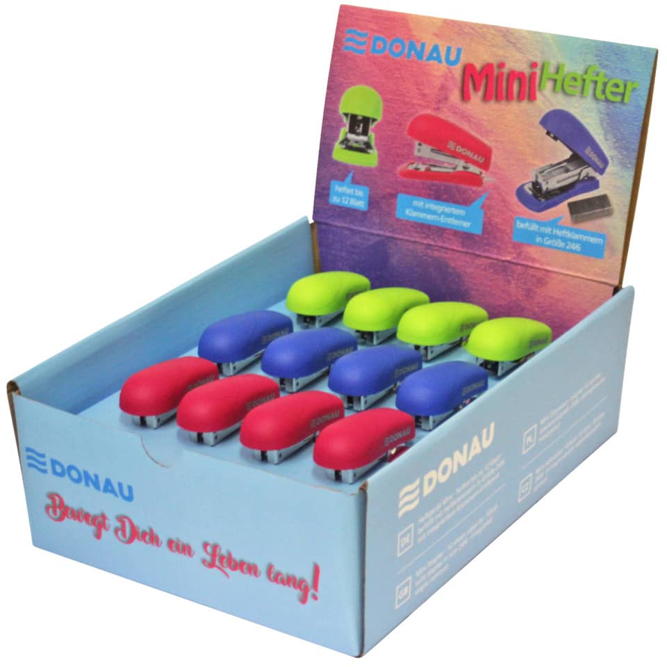 Produktinformationen "Heftapparat Mini, 12 Blatt, Einlegetiefe 16 mm, sortiert DONAU 4700100-99"