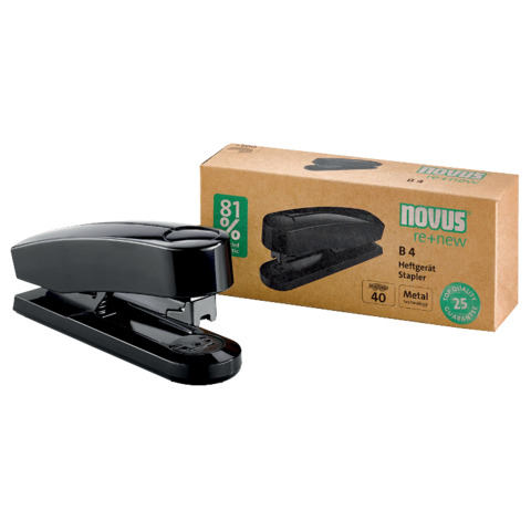 Eigenschaften "Heftgerät B 4 re+new, 40 Blatt, Einlegetiefe 65 mm, schwarz NOVUS 020-1932"