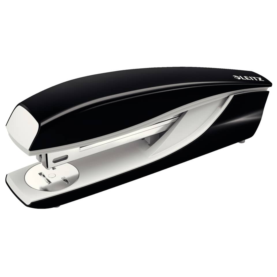 Leitz Büroheftgerät Groß NeXXt, mit Oberlademechanik, für offene und geschlossene Heftung, Tackerfunktion, mit Drehamboss und integriertem Entklammerer, mit Direct Impact Technology (DIT) für perfektes und problemloses Heften, befüllt mit Heftklammern 24/6. Heftleistung: 4 mm/40 Blatt. Heftklammern: 150 x 24/6, 150 x 24/8 oder 210 x 26/6. Einlegetiefe: 70mm. Material: Metall mit Kunststoff. 10 Jahre Garantie nur bei Verwendung von Leitz Heftklammern, GS-geprüft. Farbe: schwarz.