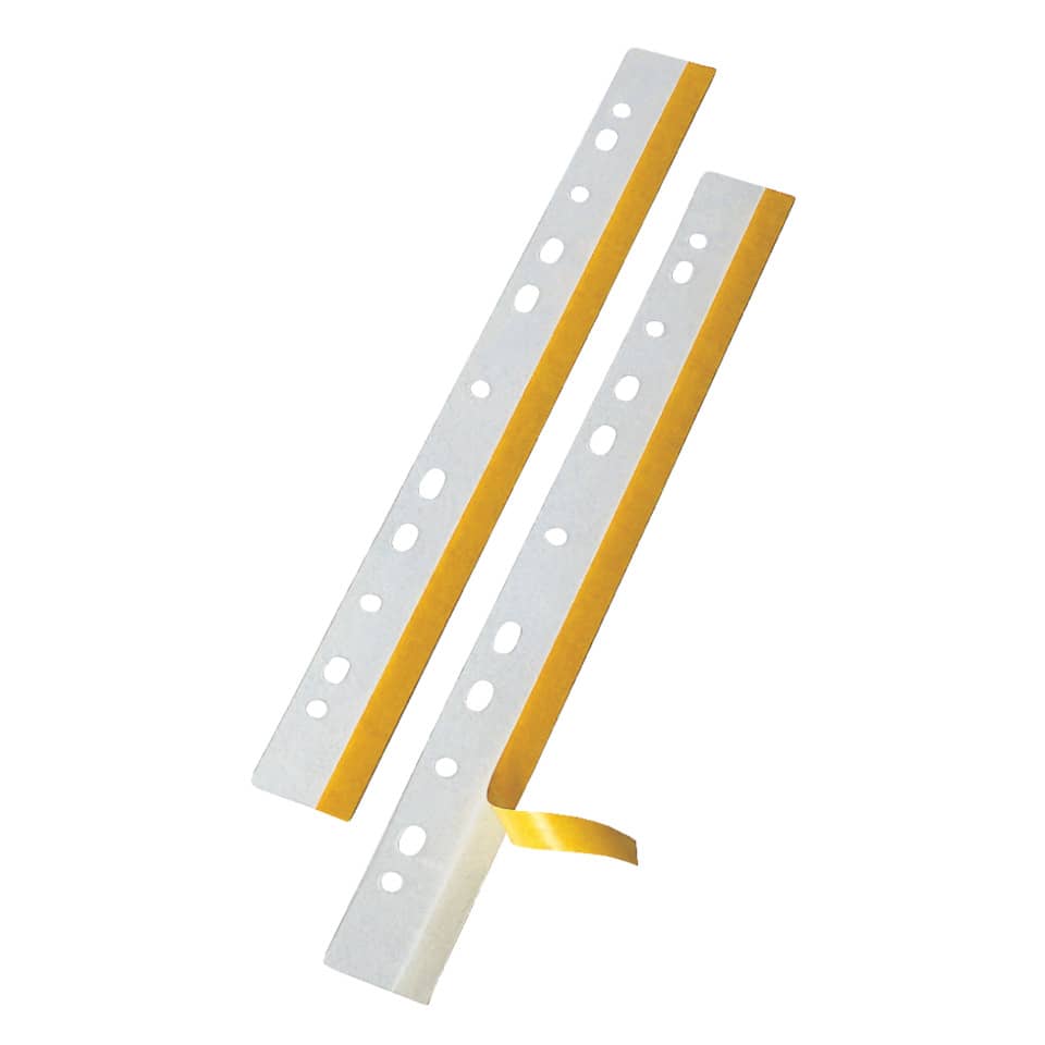 Heftstreifen HEFTFIX®. Selbstklebend. Werkstoff: Polyester. Material der Deckschiene: Papier. Material des Aufreihbandes: Polyester. A4. Lochung: international. Größe (B x H): 10 x 292 mm. Farbe: glasklar. Art der Verpackung und Inhalt: Packung mit 10 Stück.