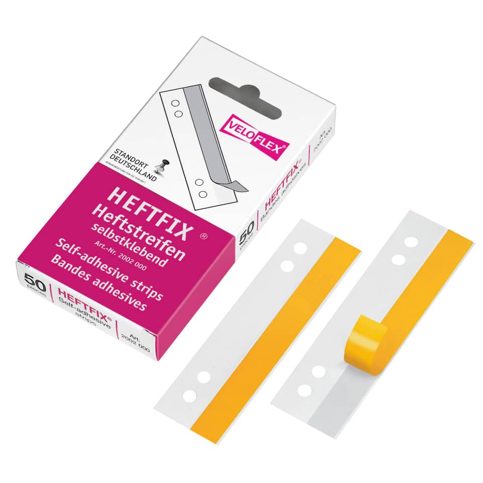 Eigenschaften "Heftstreifen Heftix - selbstklebend, 30 x 105 mm, 50 Stück, glasklar VELOFLEX 2002 000"