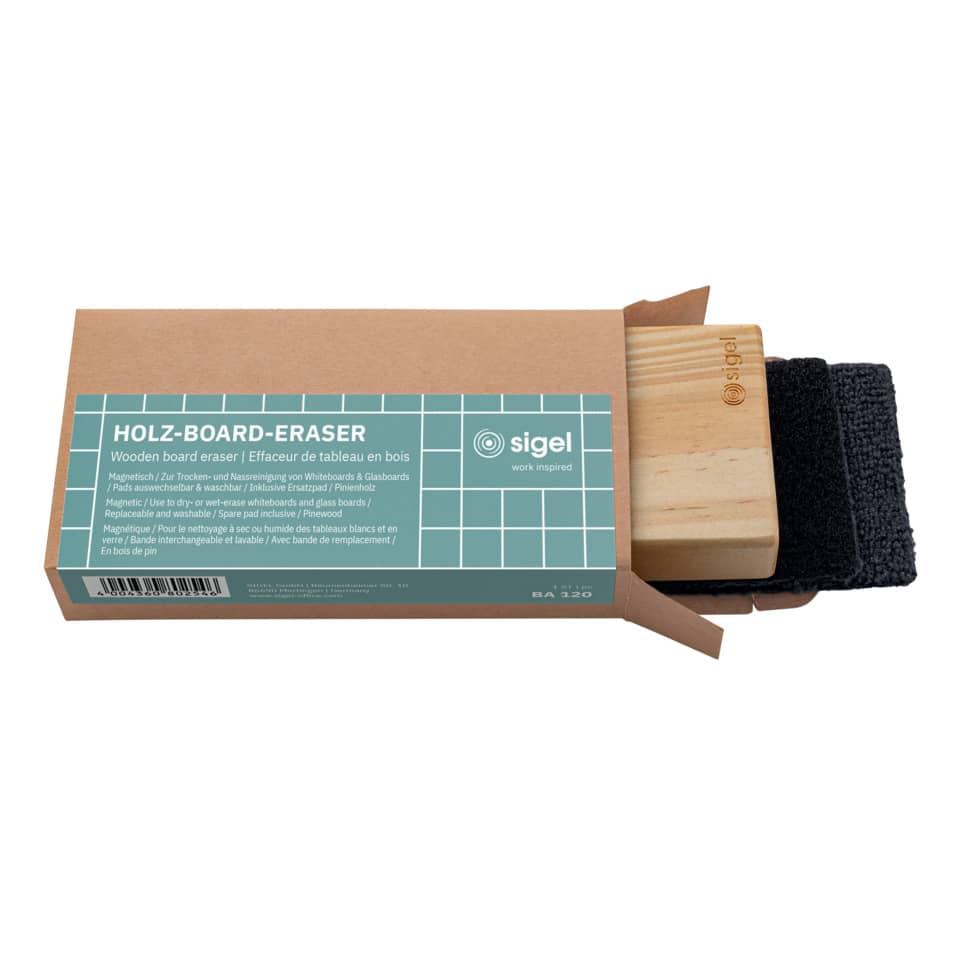 Holz-Board-Eraser, beige, magnetisch, für Whiteboards und Glas-Magnettafeln, trockene Anwendung, 1 Ersatzpad, entfernt schnell und trocken Tinte, Massivholz Pinie, Polyester, Polyamide, 13 x 6 cm, 1 Stück. Wenn Sie auf Whiteboards oder Glas-Magnettafeln Ideen visualisieren, an Pinboards Arbeitsabläufe auf Karten anpinnen oder im Team Projektfortschritte für alle Teammitglieder sichtbar machen möchten, dann nutzen Sie einfach die hochwertigen Board-Accessoires von SIGEL - sie überzeugen durch beste Qualität und Funktion. Hier finden Sie alles, was Sie für agile Arbeitsweisen oder die Nutzung der Boards im Homeoffice benötigen. Auspacken und loslegen!
