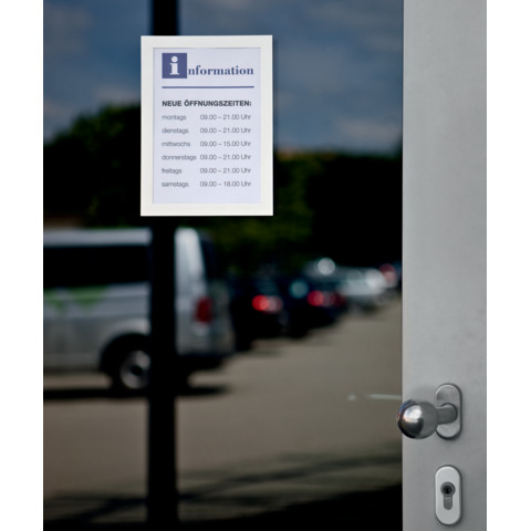 Info-Rahmen DURAFRAME® A5. Beschriftungsschild auswechselbar. Selbstklebend, magnetische Vorderseite, einfaches Wiederablösen und neu Aufkleben möglich, verwendbar im Hoch- und Querformat. Größe (B x H): 236 x 174 mm. Farbe: silber. Beutel à 2 Stück.