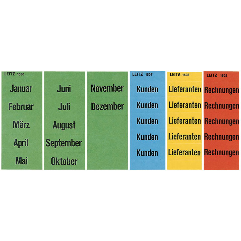 Eigenschaften "Inhaltsschild Monatsnamen, selbstklebend, 120 Stück, grün LEITZ 1530-00-00"