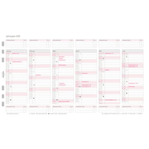 Chronoplan Jahresplan A5 2025 149x210x2 mm, Leporello-Faltung und 2 Lochleisten, gegen Ausreißen und für komfortables Planen rechts von der Mechanik, Top-Papierqualität: 120g/m² (besonders stark), Leporello-Falzung und 2 Lochleisten- gegen Ausreißen und für komfortables Planen rechts von der Mechanik, Blattgröße: A5, Universallochung, dadurch kompatibel Mit allen gängigen Zeitplansystemen, Übersichtlich durch Zweifarbdruck