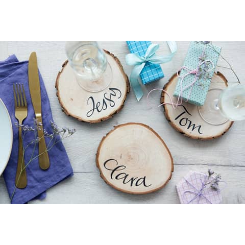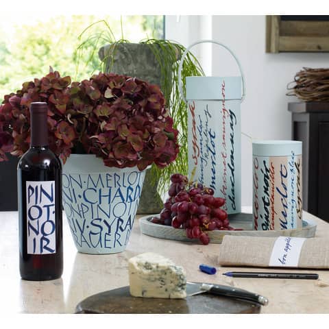 Fasermaler mit Kalligrafiespitze für ein schönes Schreiben und Kalligrafie auch auf porösen Oberflächen, besonders Terrakotta, Holz, Papier oder Leinwand. Die Kalligrafie-Spitze verfügt über eine Strichbreite von 5 mm. Die Pigmenttinte auf Wasserbasis trocknet schnell, ist extrem lichtbeständig, permanent und witterungsbeständig.