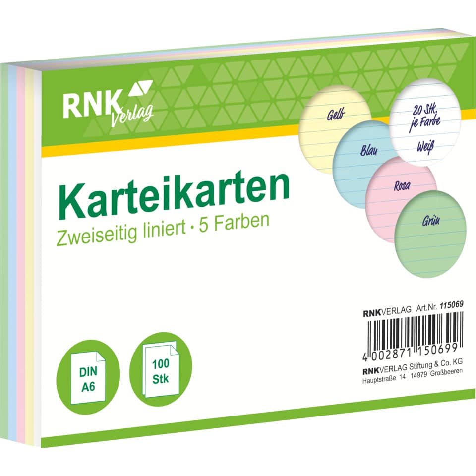 Produktinformationen "Karteikarte, A6, 170g/m², liniert, 100 Stück, sortiert RNK 115069"