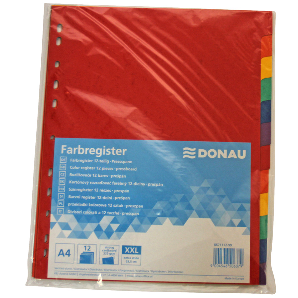 Eigenschaften "Kartonregister, A4, 225g/m², 12-teilig DONAU 8671012-99"