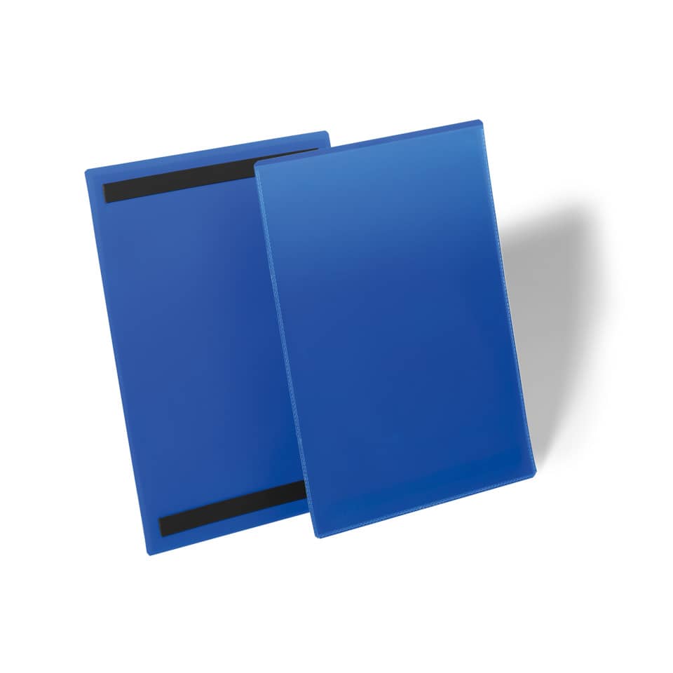 Kennzeichnungstasche magnetisch. Werkstoff: PP. Ausführung: dokumentenecht. Farbe: dunkelblau. Mit zwei rückseitigen Magnetstreifen, Anwendung an metallischen Oberflächen wie z.B. an Lagerregalen, Lochblechwänden und Metallbehältern, blaue Rückenfolie und transparente Vorderfolie. Außenformat (B x H): 223 x 313 mm. Art der Verpackung und Inhalt: 50 Stück.