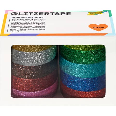 Produktinformationen "Klebeband Glitter, 5mx10mm, 10er-Set, sortiert FOLIA 28509"