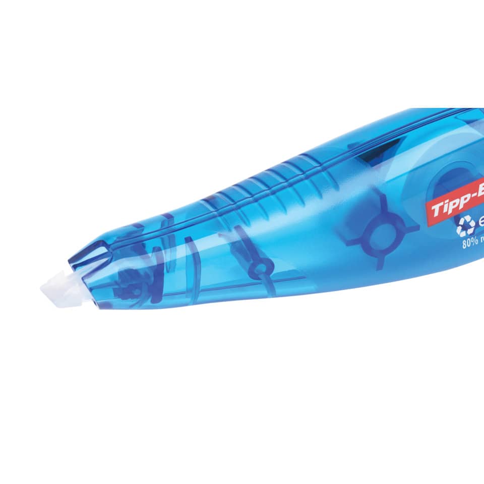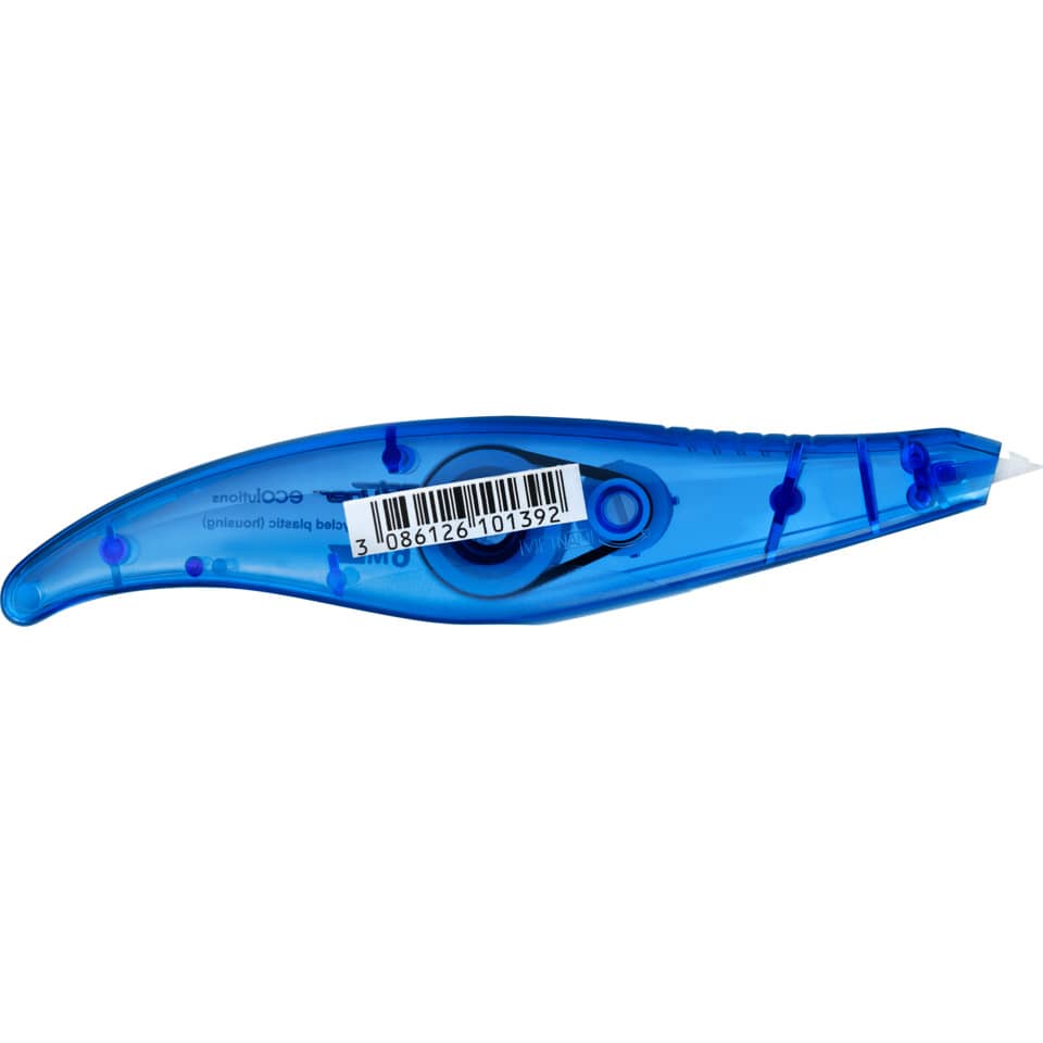 Korrekturroller Tipp-Ex® ECOlutions(TM) Exact Liner®. Farbe Korrekturband: weiß. Schattenfrei kopierbar, ohne Lösungsmittel. Aus 69%* recyceltem Material, ideal für Schüleretuis, für Rechts- und Linkshänder, widerstandsfähiges Polyesterband, sofort überschreibbar, liegt in der Hand wie ein Stift. * Der Recycling-Prozentsatz wird anhand des Gesamtgewichts des Produkts ohne Korrekturband berechnet. Größe (B x H x L): 22 x 27 x 134 mm. Gehäusefarbe: blau-transparent. Bandgröße (L x B): 6 m x 5 mm.
