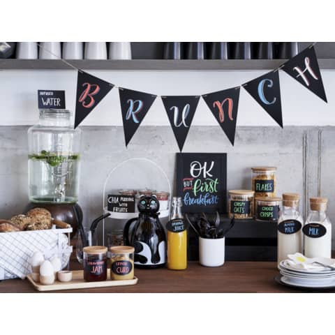 Kreidemarker für die nicht-permanente Gestaltung, Dekoration und Beschriftung von geschlossenen Oberflächen, z. B. Fenster, dunkle Tafeln, Glas, plexiglas® und Spiegel. Die Rundspitze verfügt über eine Strichbreite von 1-2 mm. Die deckende, geruchsneutrale Flüssigkreide auf Wasserbasis kann von fast allen geschlossenen Oberflächen mit einem feuchten Tuch abgewischt werden. Die Packung enthält die Farben blau-metallic, grün-metallic, violett-metallic und pink-metallic.