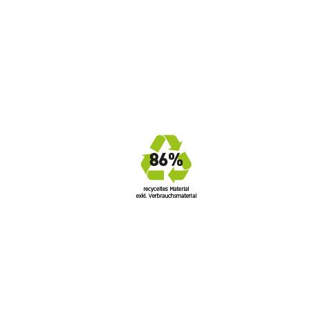 | Besonderheiten: | Umweltfreundlich: Besteht zu 86% aus recyceltem Material (exkl. Verbrauchsmaterial), zumeist aus recycelten PET-Flaschen und zu 2,5% aus Plastik aus maritimem Umfeld wie Meeren, Flu?ssen, Seen o.ä. gefertigt. Die Gehäuseform ist einer PET-Flasche nachempf |