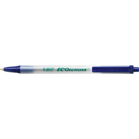 Kugelschreiber BIC® ECOlutions® Clic Stic. Druckmechanik. Typbezeichnung der Mine: n.a.. Ausführung Mine: 0,4 mm, blau, dokumentenecht. Ausführung Stift: Kunststoff. Ausführung Clip: Kunststoff, in Schreibfarbe. Aus 78 % recyceltem Material. Der Recycling-Prozentsatz wird anhand des Gesamtgewichts des Produkts berechnet. Zertifikate und Zulassungen: NF Environnement. Farbe des Schaftes: frostig-transparent.