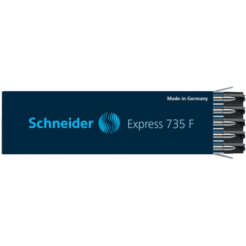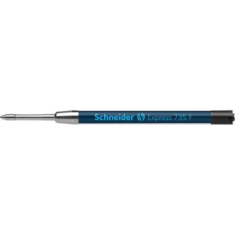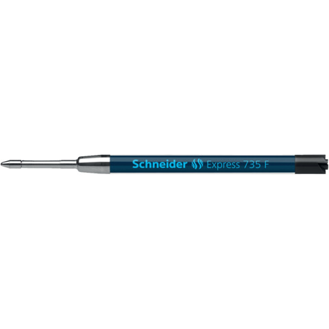Kugelschreibermine Express 735. Verwendung für Produkt: Passend in alle Schneider Kugelschreiber-Modelle und Gelschreiber mit universeller Passform Plug+Play, sowie viele am Markt befindliche Kugelschreiber mit G2-System. Typbezeichnung der Mine: Großraummine ISO-Format G2. Ausführung Mine: F, schwarz, dokumentenecht. Typbezeichnung der Mine gemäß ISO-Norm: ISO 12757-2. Material des Schaftes: Metallmine. Länge: 98 mm. Die verschleißfeste Edelstahlspitze garantiert, dass der große Pasteninhalt vollständig und schmierfrei genutzt werden kann.