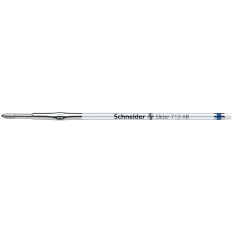 Kugelschreibermine Slider 710. Verwendung für Produkt: Passend in alle Schneider-Kugelschreiber mit Plug+Play-System und viele andere Fabrikate. Typbezeichnung der Mine: Metallmine im Format X20 mit Jumbospitze. Ausführung Mine: XB, blau, dokumentenecht. Typbezeichnung der Mine gemäß ISO-Norm: ISO 12757-2. Material des Schaftes: Metall. Länge: 107 mm. Viscoglide®-Technologie für außergewöhnlich weiches und gleitendes Schreiben. Verschleißfeste Edelstahlspitze. Schnelltrocknend und wischfest beim Übermarkieren mit Textmarker.