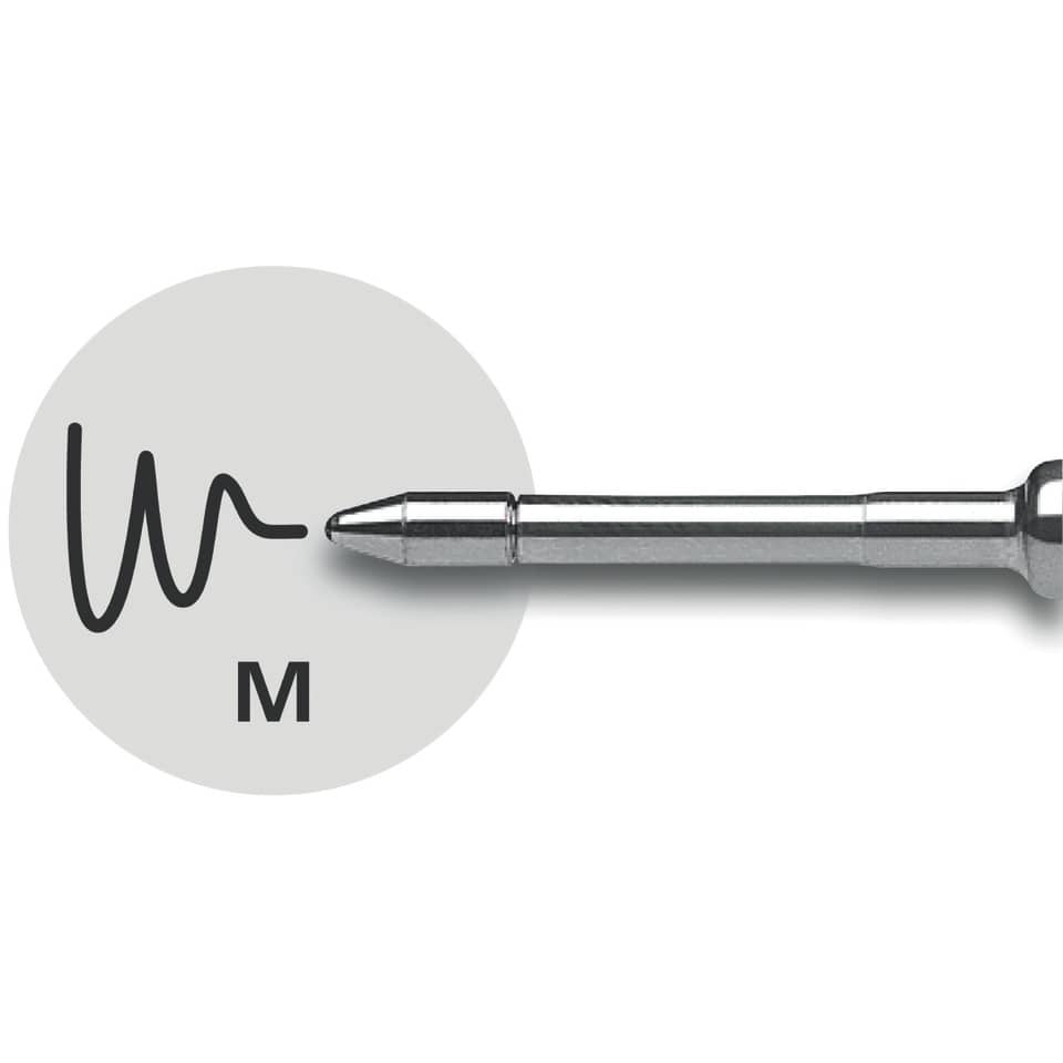 Kugelschreibermine Slider 755. Verwendung für Produkt: Passend in alle Schneider Kugelschreiber-Modelle und Gelschreiber mit universeller Passform "Plug & Play", sowie viele am Markt befindliche Kugelschreiber mit G2-System. Typbezeichnung der Mine: Internationale Großraummine im G2-Format mit revolutionärer ViscoGlide®-Technologie. Ausführung Mine: M, schwarz, dokumentenecht. Typbezeichnung der Mine gemäß ISO-Norm: ISO 12757-2 G2. Material des Schaftes: Metallmine. Länge: 98 mm. Die verschleißfeste Edelstahlspitze garantiert, dass der große Pasteninhalt vollständig und schmierfrei genutzt werden kann.