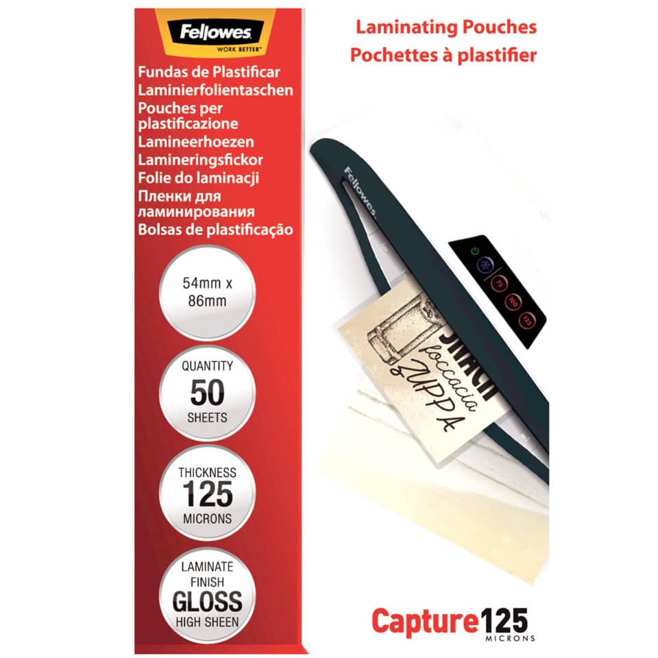 Produktinformationen "Laminierfolie Capture 125 Mikron, glänzend, 86 x 54mm, 50 Stück FELLOWES 5396602"
